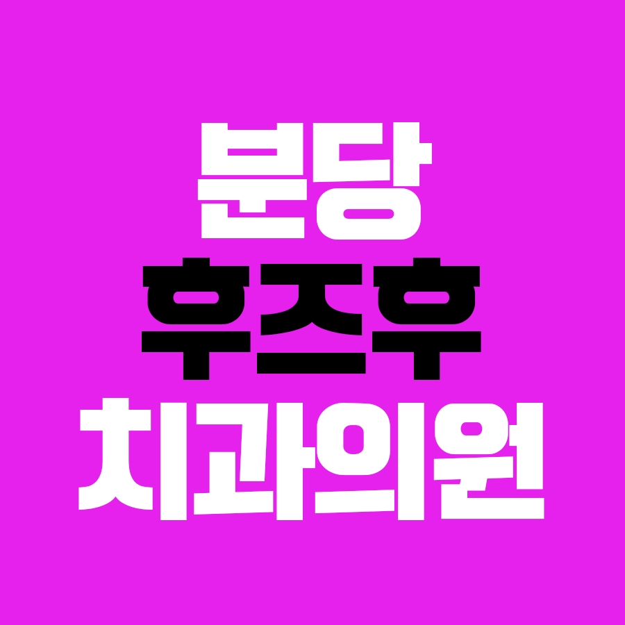 분당후즈후치과의원은 성남시 분당구 수내역 인근에 위치한 지역 치과로, 임플란트·사랑니 발치·충치 및 신경치료·치아교정·심미치료까지 다양한 진료를 한 자리에서 받을 수 있는 곳입니다. 대표원장은 치의학 박사로 30년 이상의 임상 경험을 가지고 있으며, 분과별 협진 시스템을 운영해 환자 맞춤형 치료를 제공합니다.